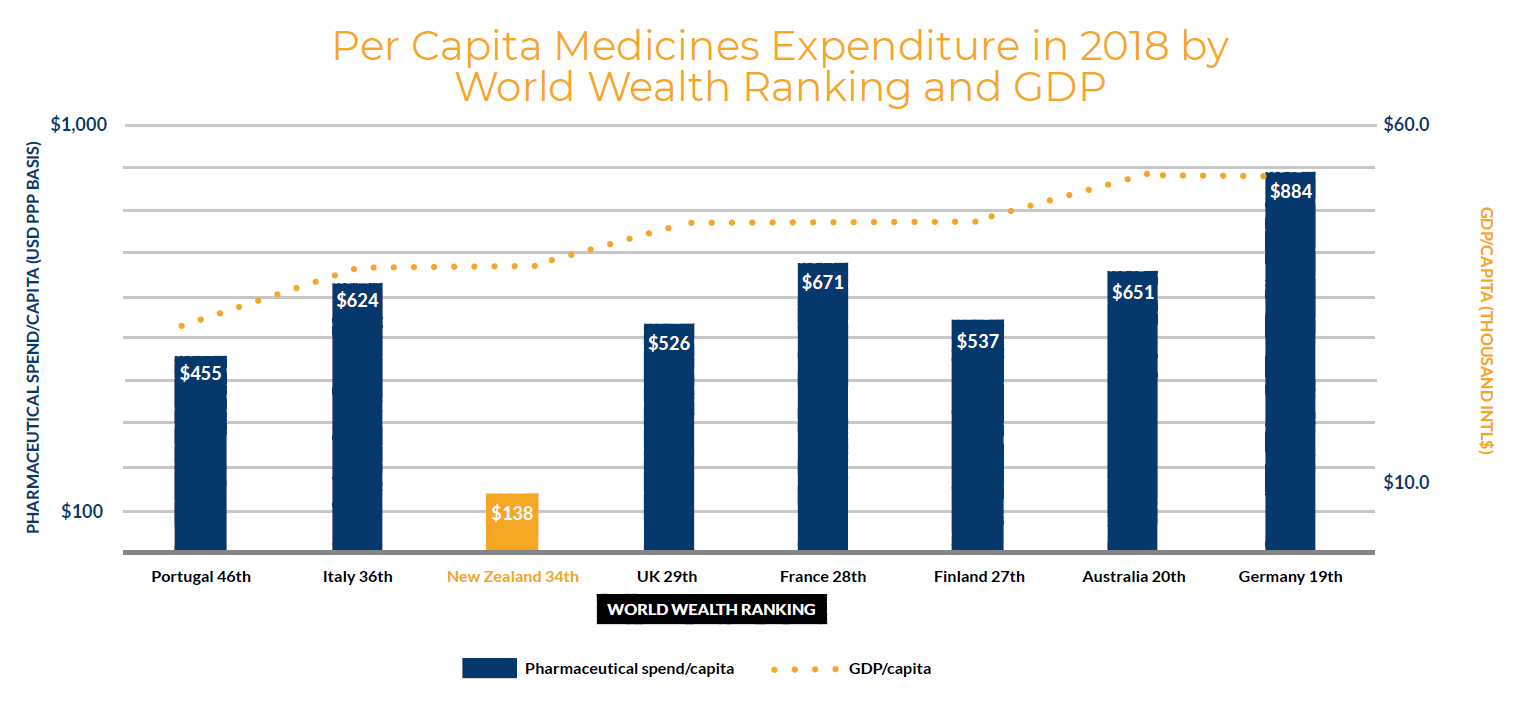 The medicines budget needs to be increased to bring New Zealand’s spending per capita in line with other comparable OECD countries.3,4,5